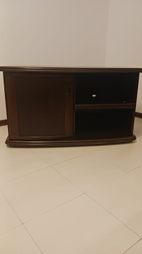 Sprzedam szafkę RTV w ciemny brązowym kolorze o wymiarach:długość - 103 cm